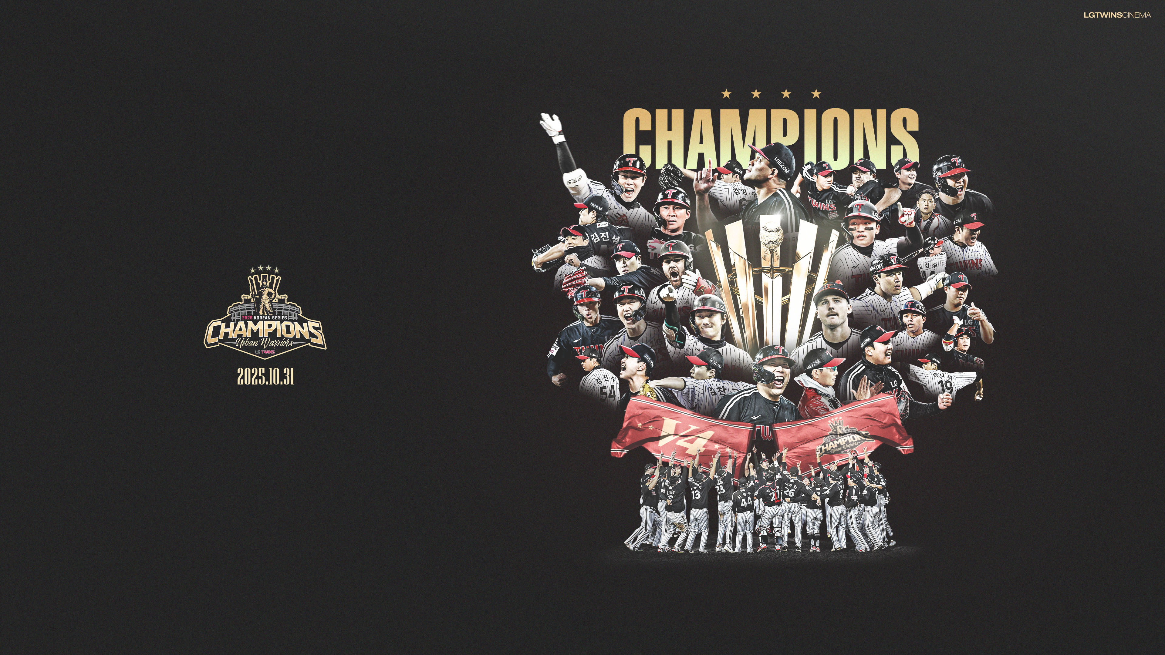 2025 한국시리즈에서 선수들의 모습이 담긴 우승기념 포스터를 PC&모바일 배경화면, 포토카드, A2 대형 포스터로 재 편집하여 준비해 보았습니다.