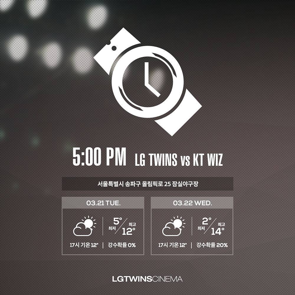 모두 아시겠지만 오늘과 내일, 잠실 시범경기 vs KT위즈와의 경기는 오후 5시입니다!